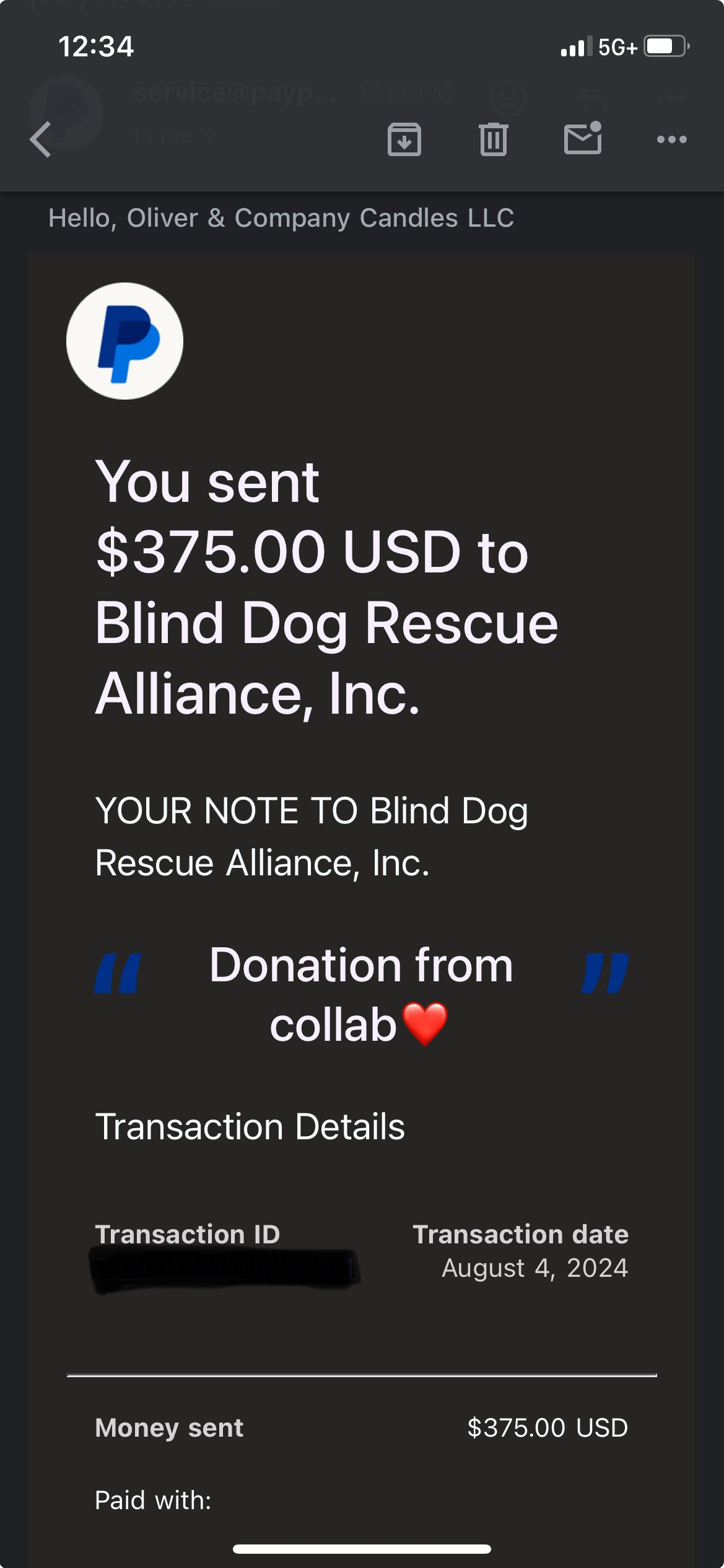 We worked with The Blind Dog Rescue Alliance from July 18th thru August 1st 2024. This successful partnership got this rescue $375