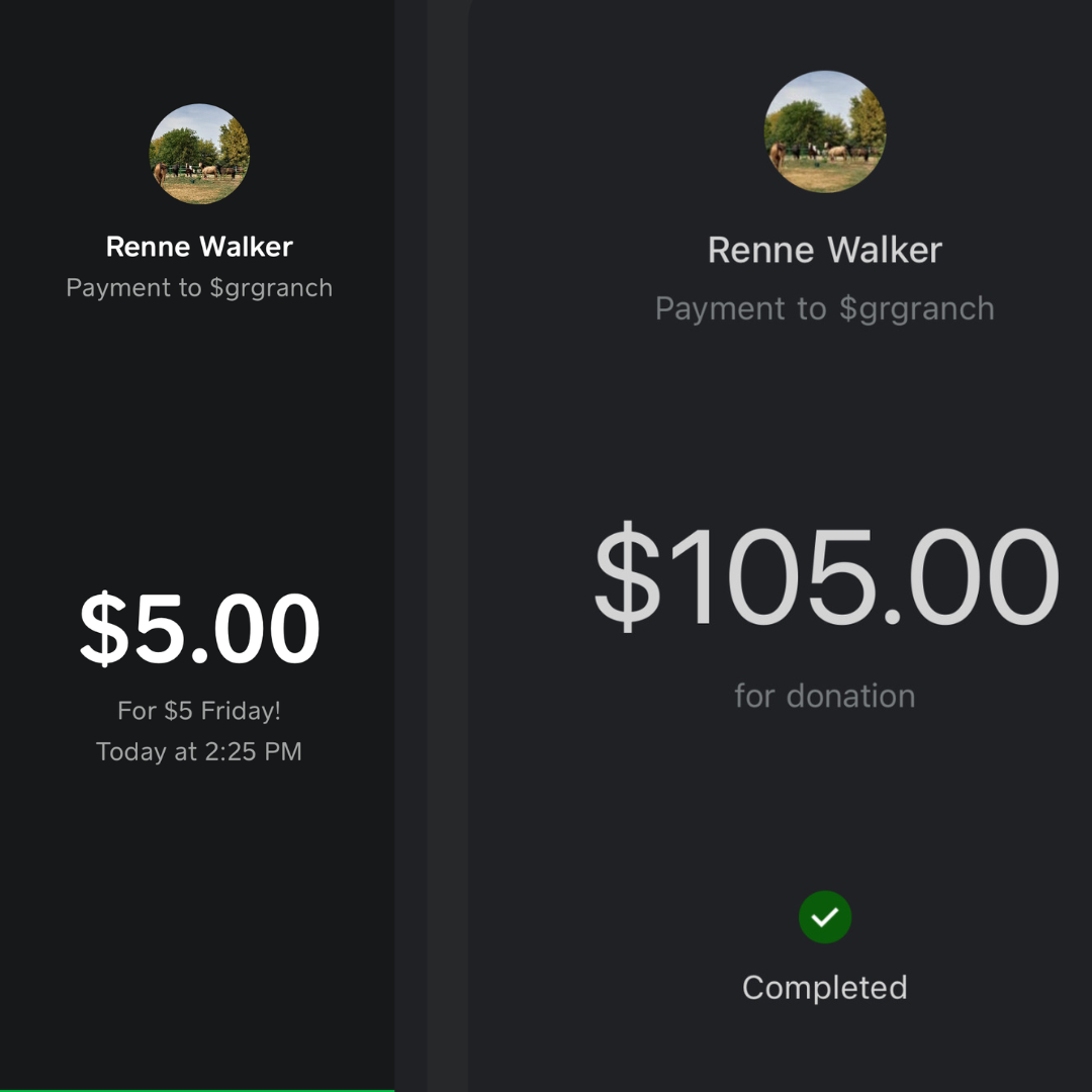 We worked with GRG ranch from April 7-21 2024 while they celebrated their 2 year anniversary of being open! we donated $110 to farm animals in need.