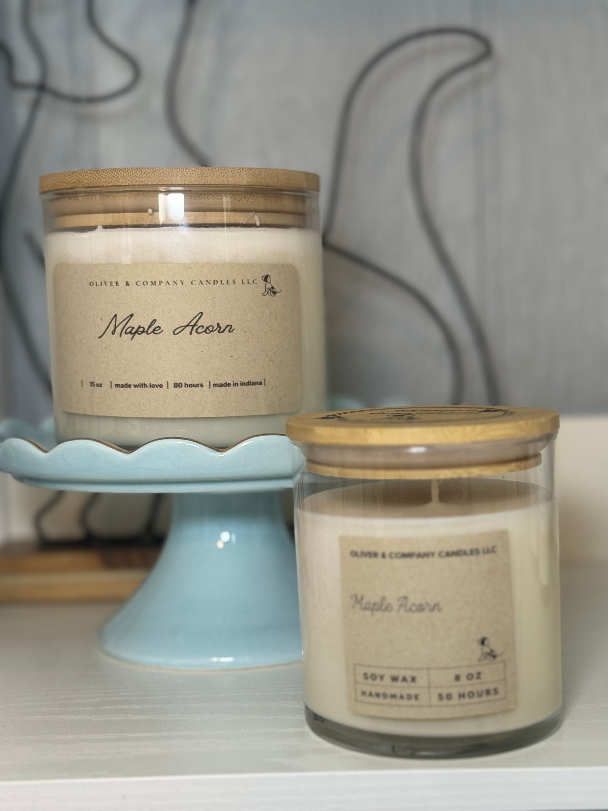 Cozy up to the comforting scent of autumn with our Maple Acorn Soy Candle. Hand-poured with 100% natural soy wax, this candle blends the rich sweetness of maple syrup with the earthy warmth of roasted acorns and a hint of vanilla. The result is a smooth, woodsy fragrance that fills your space with nostalgic fall charm.